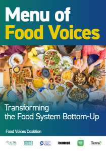 Here it is: our Menu of Food Voices! This document reflects our key learnings during the eighteen-month Food Voices Coalition project, funded by Healthy Food Healthy Planet. Seven organisations in six European countries worked in various ways to influence the food retail sector, from workshops to research and campaigns, through food policy councils, networking, and mobilisation. The common thread in all our work is that we worked from the bottom up, giving a voice to citizens; to marginalised communities, students, and farmers.